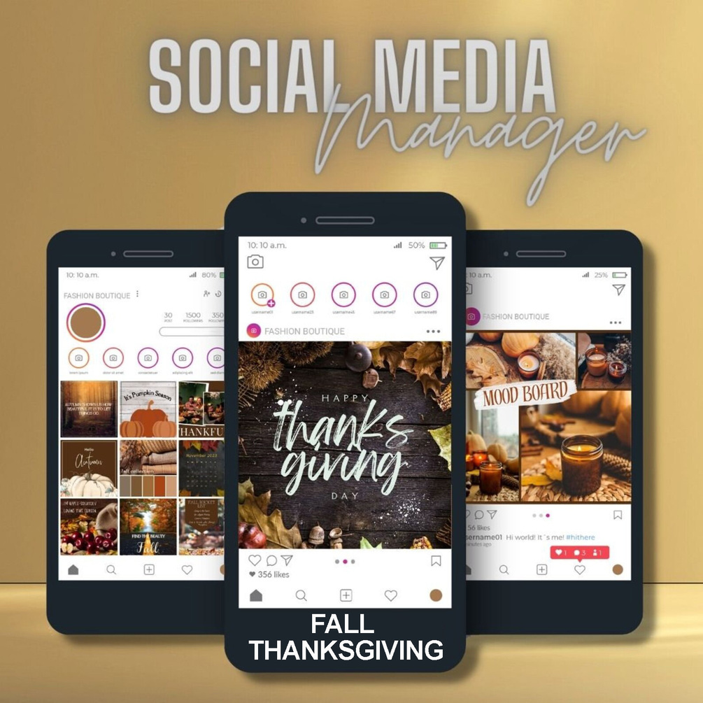 Fall/Thanksgiving Instagram Post Template Bundle - Instagram Engagement - Season -Social Media Posts - 75 Files 25 each Jpeg, Pdf, and Canva