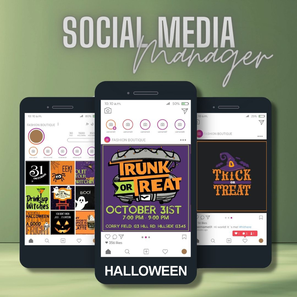 Halloween Instagram Post Template Bundle - Instagram Engagement - Season -Social Media Posts - 75 Files 25 each Jpeg, Pdf, and Canva