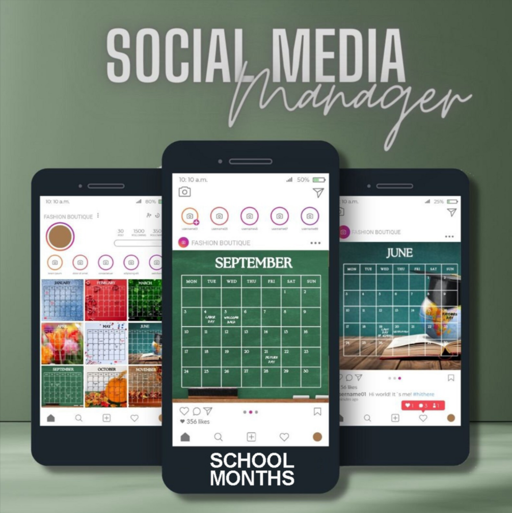 School Months Instagram Post Templates - Add your Info - Instagram Engagement - Social Media Posts - 30 Files 10 each Jpeg, Pdf, and Canva