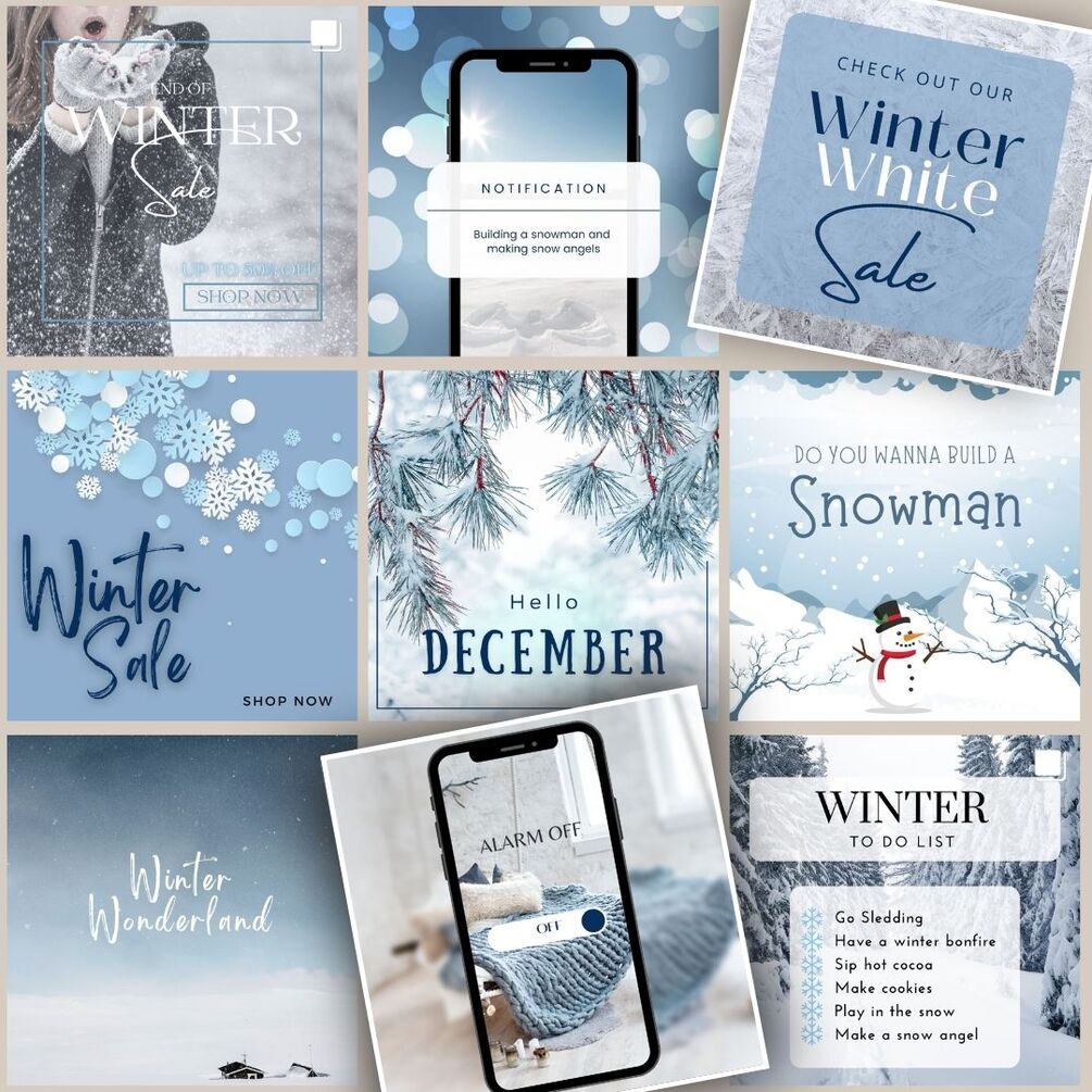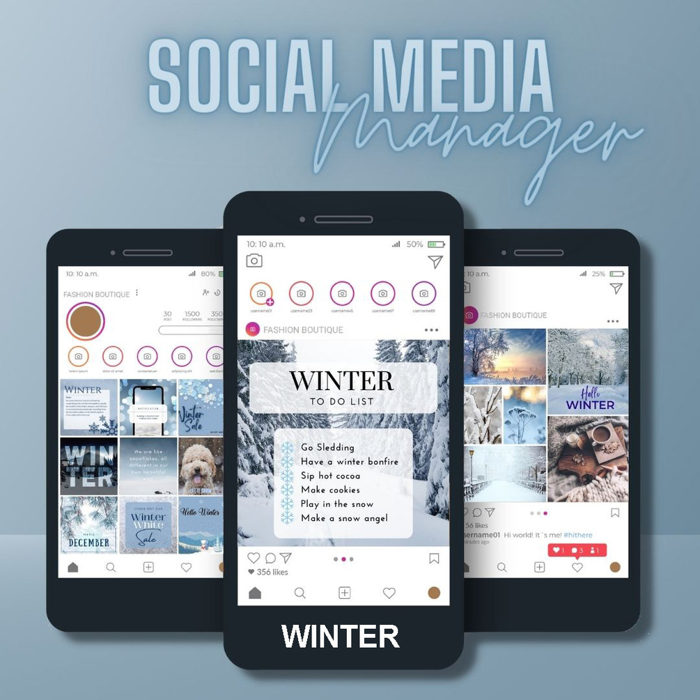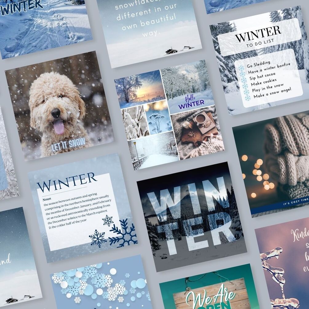 Winter Instagram Post Template Bundle - Instagram Engagement - Seasonal - Social Media Posts - 60 Files - 20 each Jpeg, Pdf, and Canva